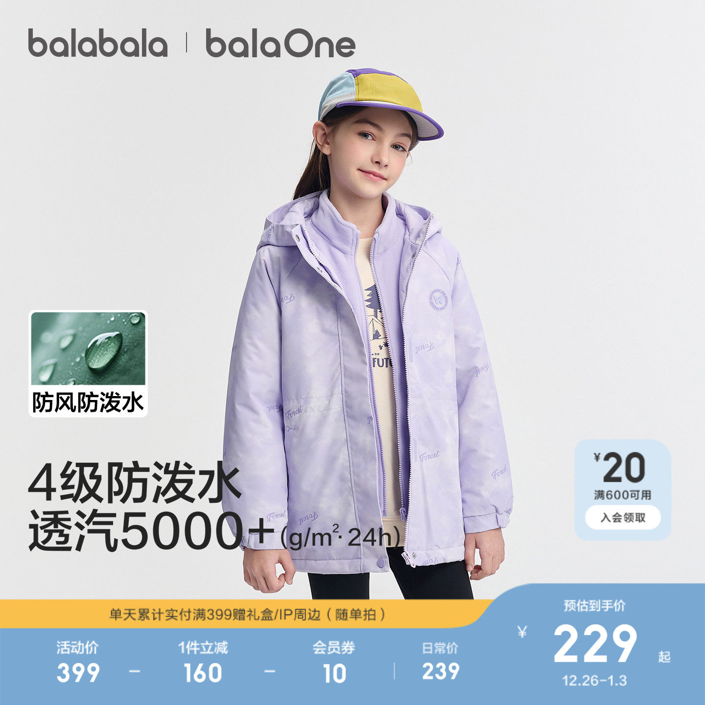 巴拉巴拉童装儿童棉服女童外套两件套新款2025秋冬装防泼水保暖潮