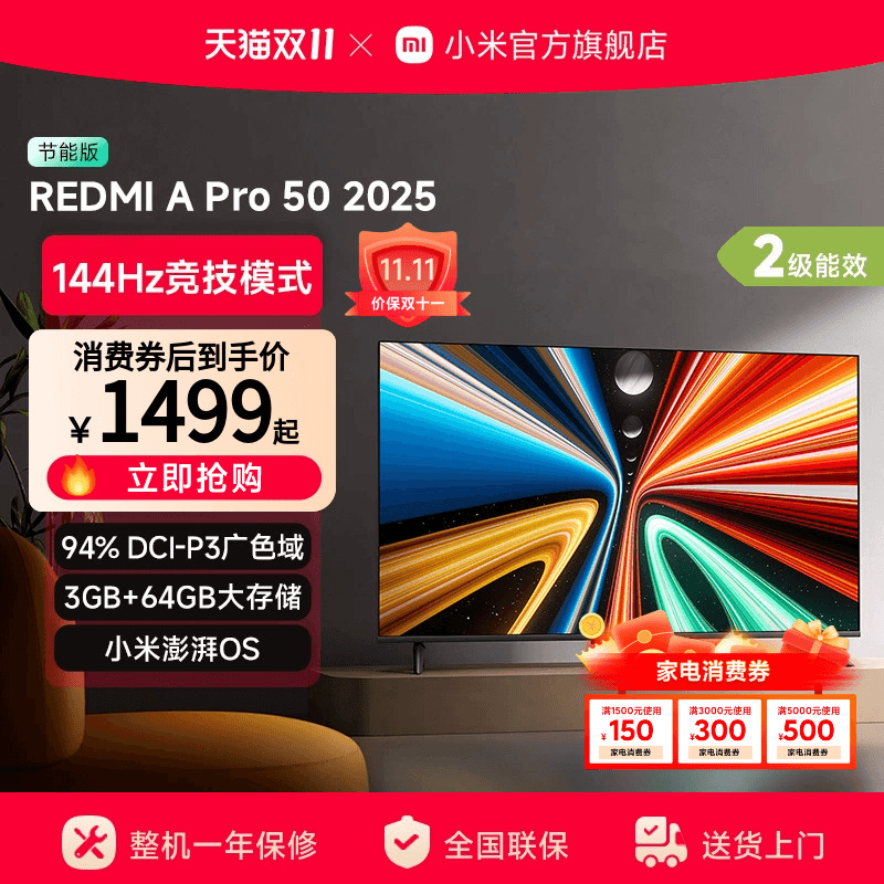 小米REDMI A Pro50英寸高清144Hz高刷平板电视机2025以旧换新补贴