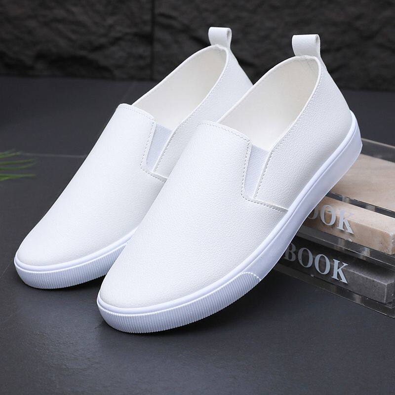 春秋款透气皮面软底男女工作鞋一脚蹬懒人鞋百搭小白鞋休闲板鞋子