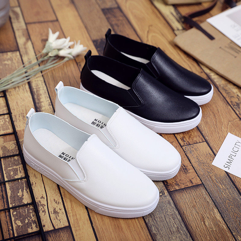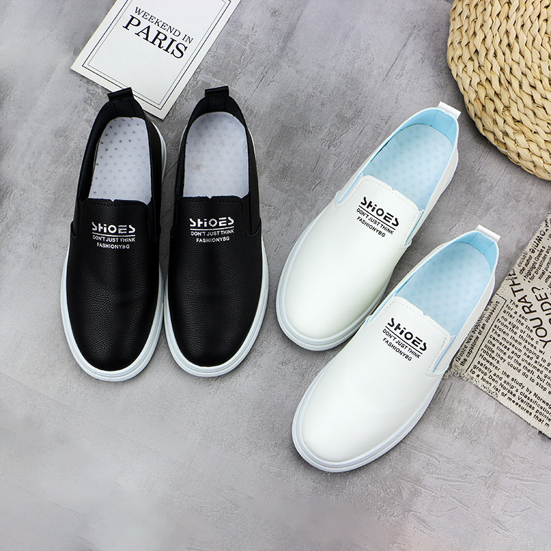休闲皮面小白鞋女春新款懒人平底鞋时尚百搭软底单鞋防滑防水板鞋