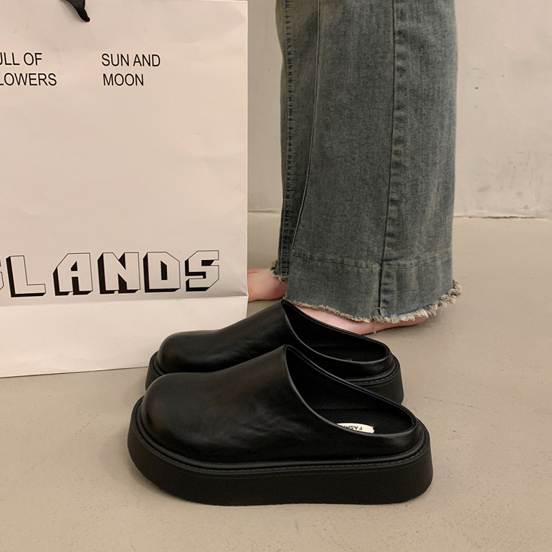 踩屎感厚底拖鞋女春秋无后跟懒人女鞋轻便软底包头半拖鞋皮面防水