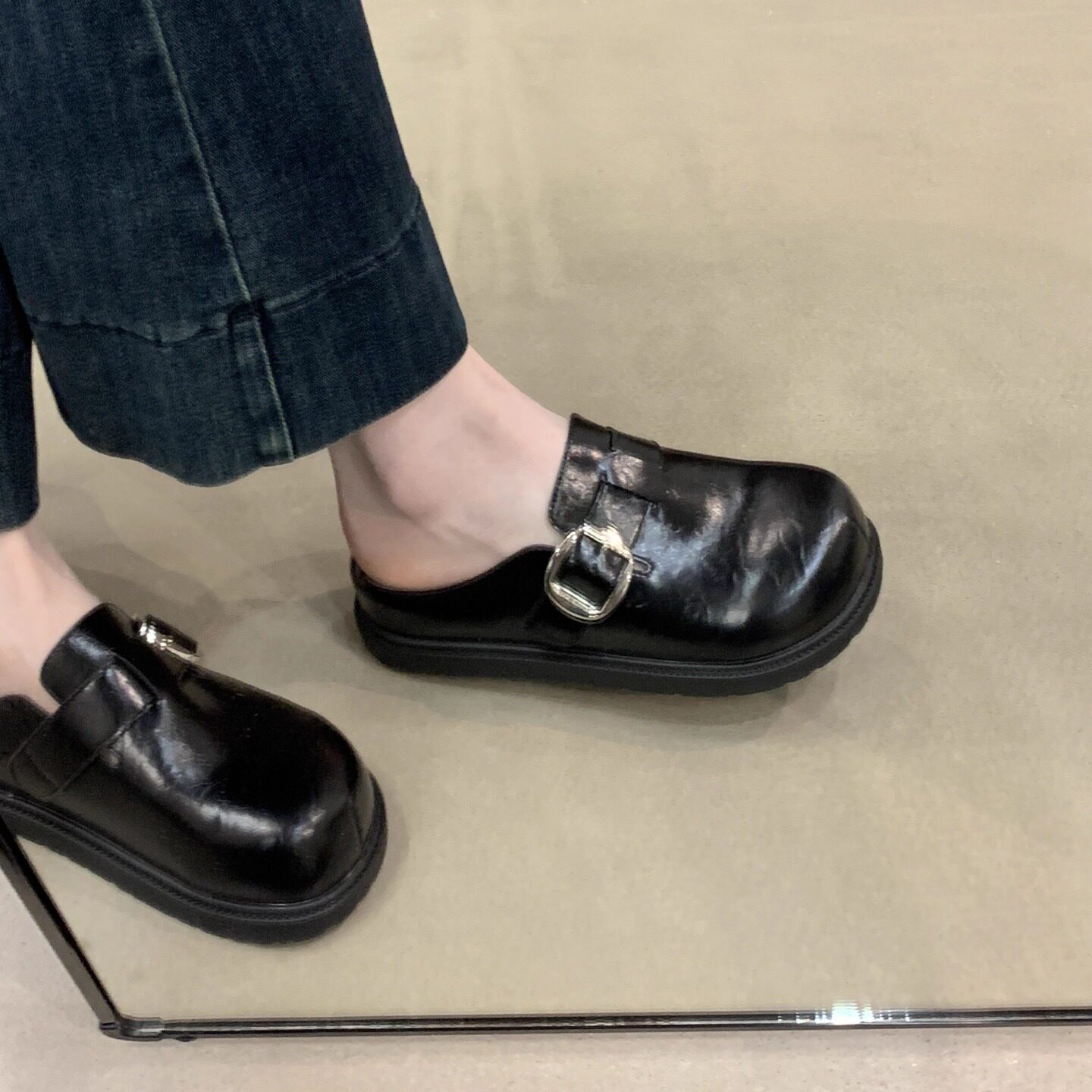 - 乐福鞋 懒人鞋厚底女