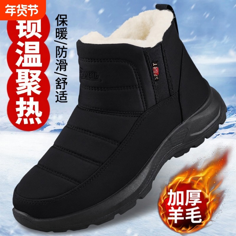 2025冬季绵羊毛新款老北京布鞋男棉鞋加绒保暖男士中老年休闲鞋靴