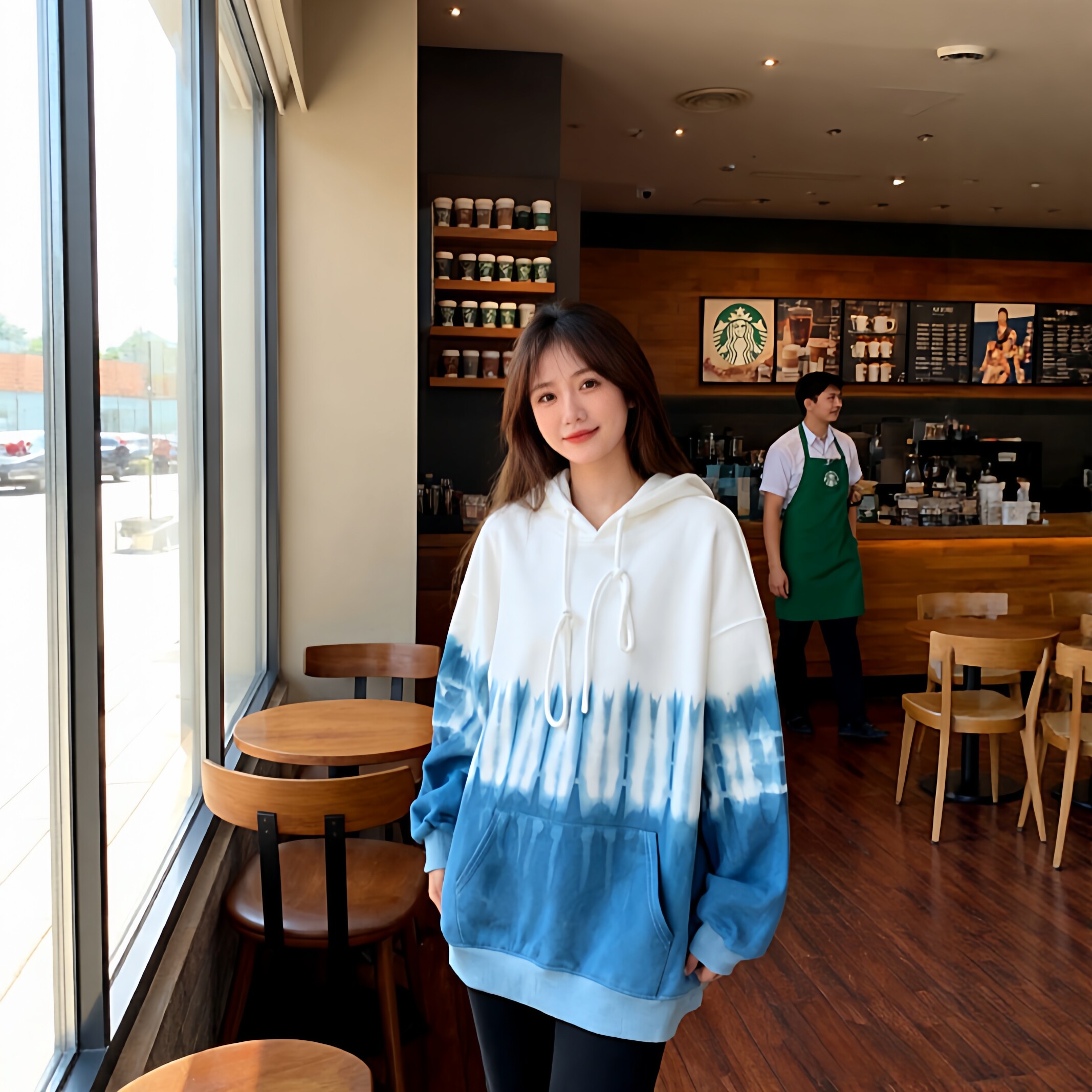 扎染蓝白色连帽卫衣女2025秋季新款帽衫宽松大码上衣百搭带帽外套