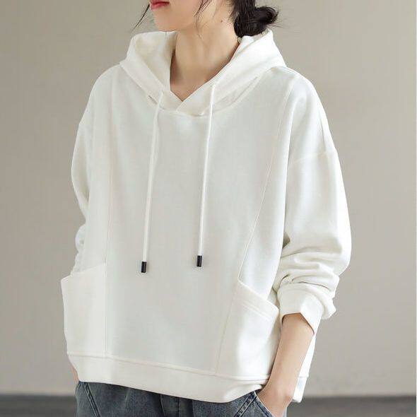 白色休闲连帽卫衣女春秋薄款2025新款宽松慵懒长袖上衣女带帽外套
