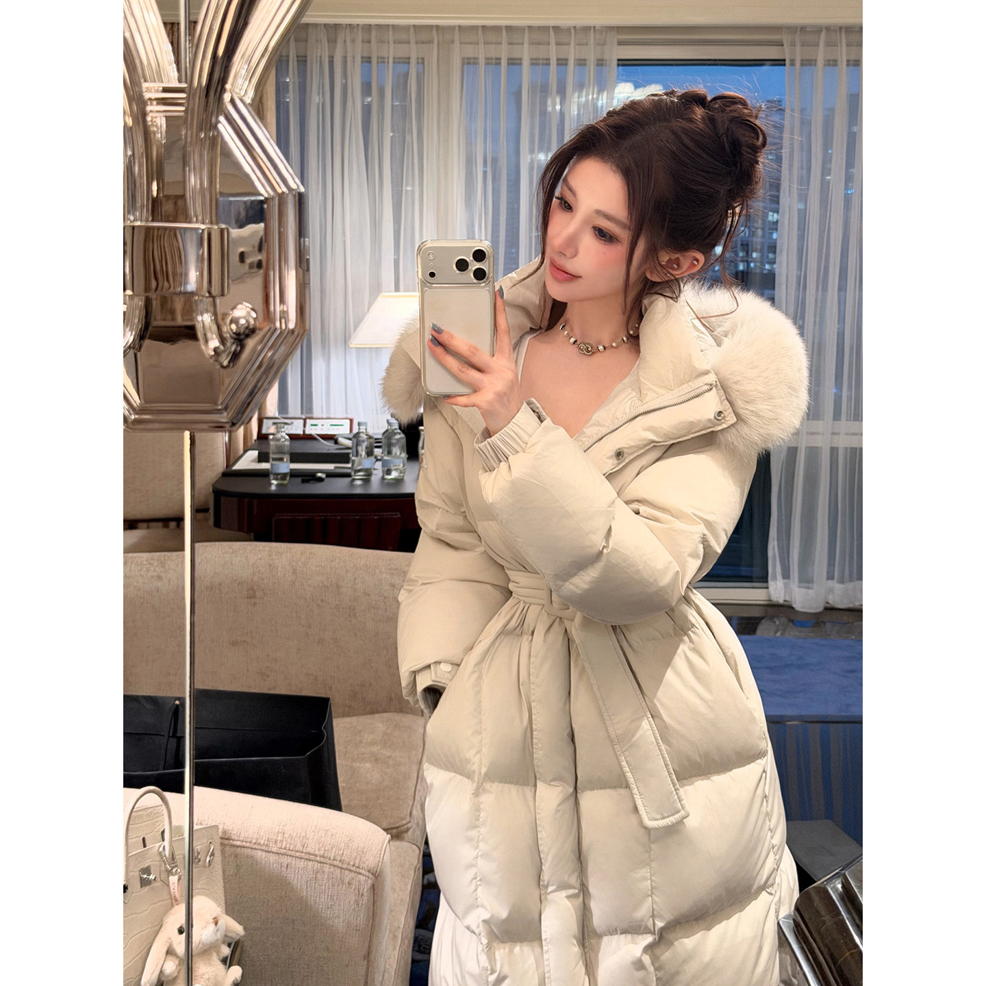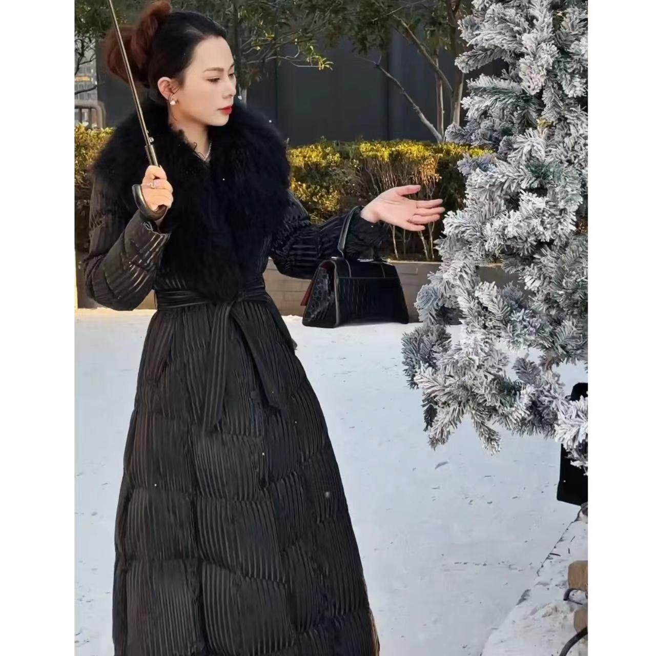 2025冬季新款欧货狐狸大毛领中长款羽绒服女收腰过膝加厚大牌外套