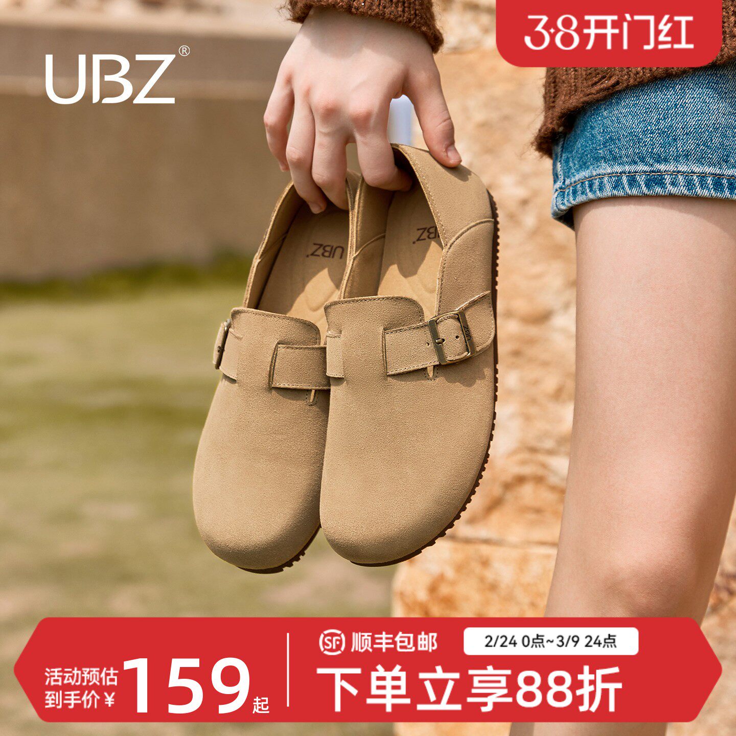 UBZ 防水勃肯鞋女全包2026春新款真皮博肯孕妇一脚蹬乐福鞋豆豆鞋