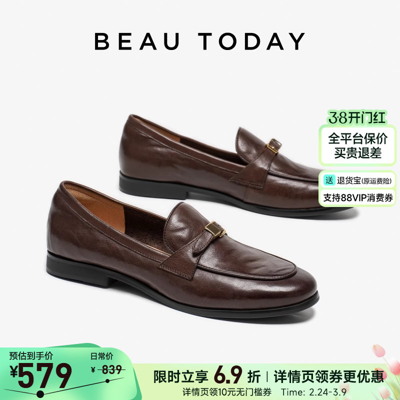 BeauToday乐福鞋女2026春季一脚蹬黑色英伦风小皮鞋平底浅口单鞋