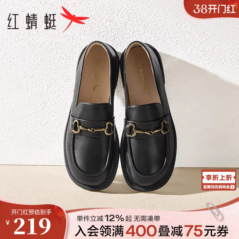 红蜻蜓乐福鞋女春季新款一脚蹬女鞋软底舒适黑色单鞋女士平底皮鞋