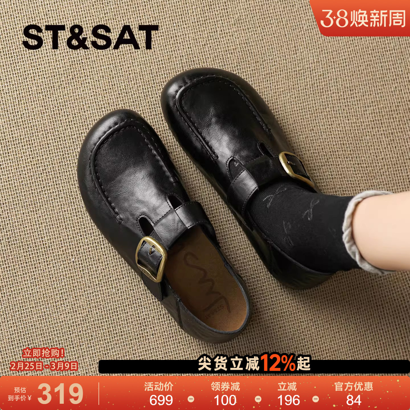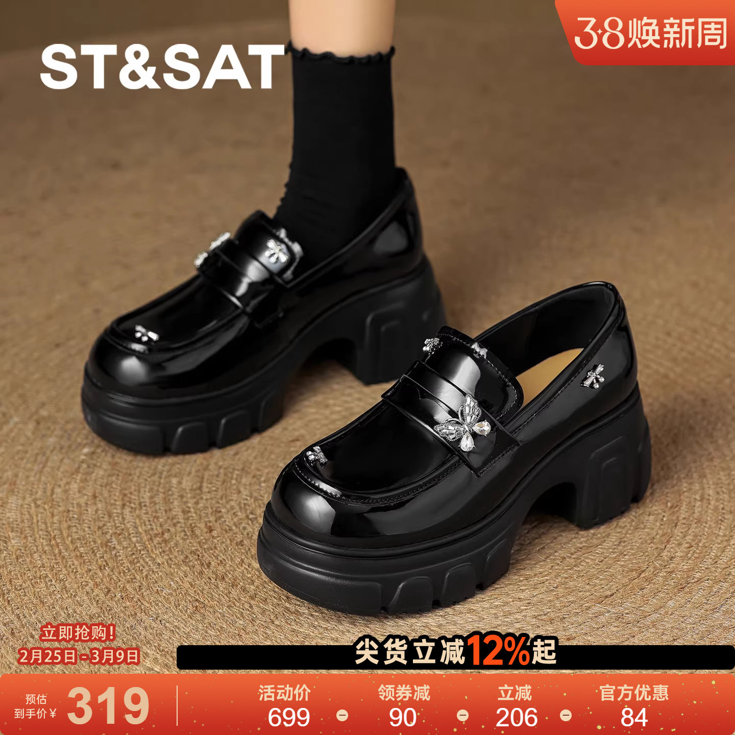 星期六厚底乐福鞋女鞋2026新款春季增高一脚蹬皮鞋通勤双扣带单鞋