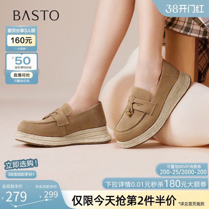 百思图26春新款一脚蹬草编渔夫鞋厚底乐福鞋女松糕鞋单鞋B0515CA5