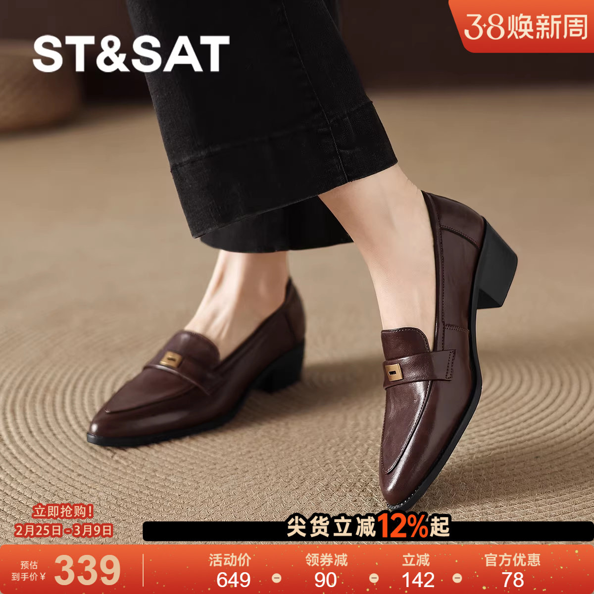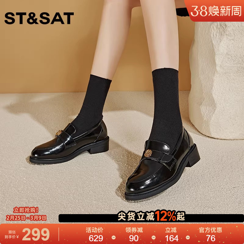 星期六山茶花乐福鞋女2025年夏季新款一脚蹬单鞋英伦百搭中跟皮鞋