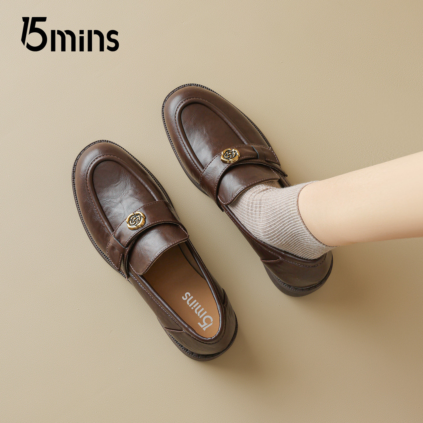 15mins棕色小皮鞋女款2026春季新款英伦风一脚蹬单鞋山茶花乐福鞋