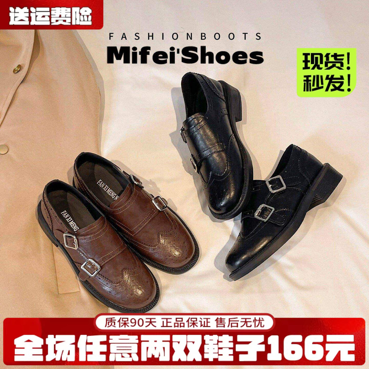 真皮~复古布洛克雕花乐福鞋女2026新款一脚蹬孟克鞋英伦风小皮鞋