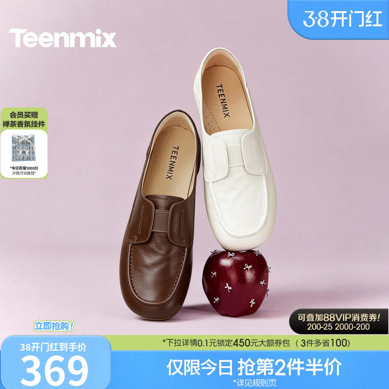 天美意复古软底乐福鞋平底单鞋女一脚蹬小皮鞋2026春新款AG016AA6