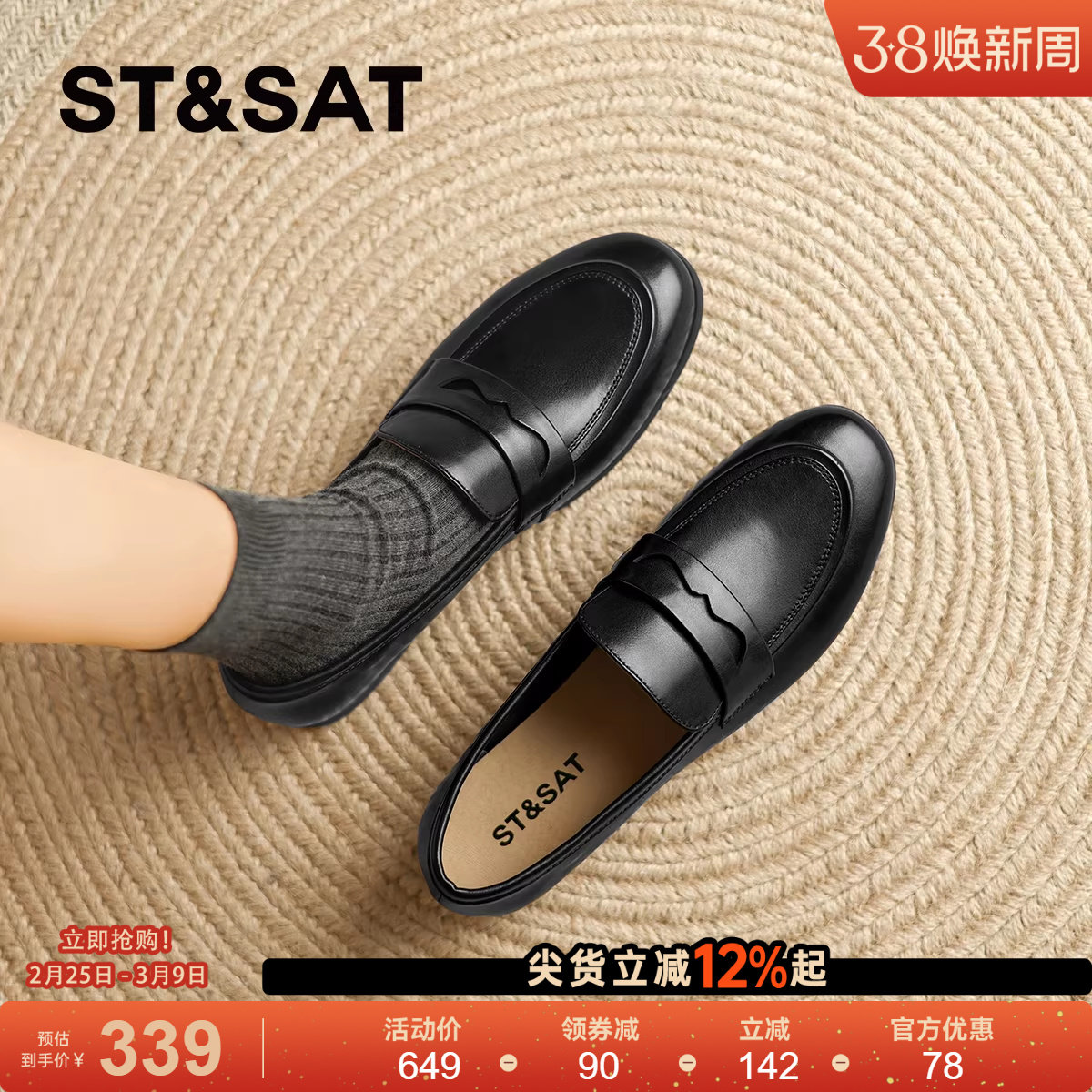 星期六真皮牛皮乐福鞋女鞋2025新款一脚蹬软底软面厚底英伦小皮鞋