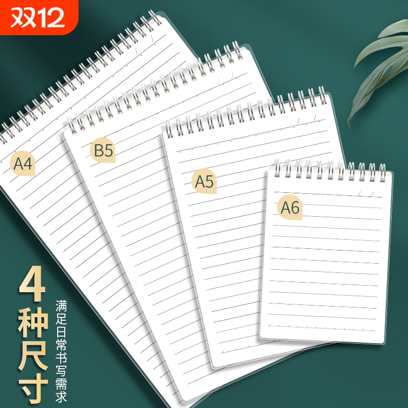 加厚线圈本笔记本本子a5透明考研横线小格子b5小方格网格本高颜值大号A4侧翻活页本初中生高中生专用记事本