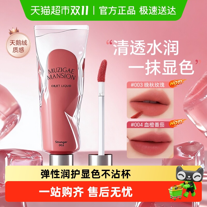 MUZIGAE MANSION韩国水雾冰块唇釉显白不掉色滋润唇泥裸粉色口红