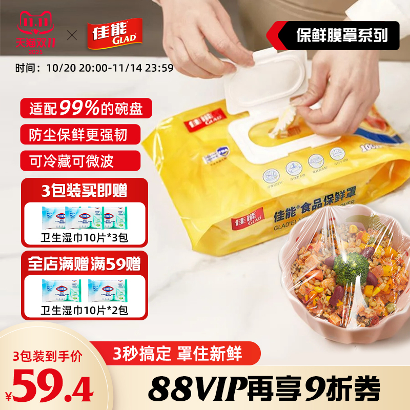 佳能食品级一次性保鲜膜罩100只松紧口大小碗通用耐高温可冷藏