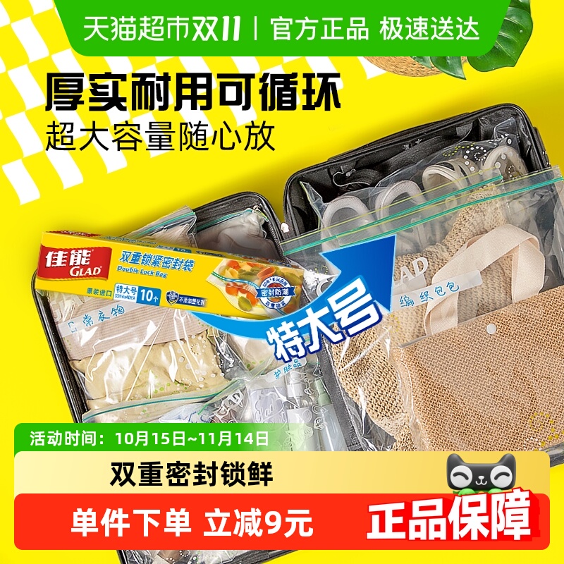 佳能Glad食品级密封袋保鲜袋带封口家用加厚冰箱冷冻用食品收纳袋