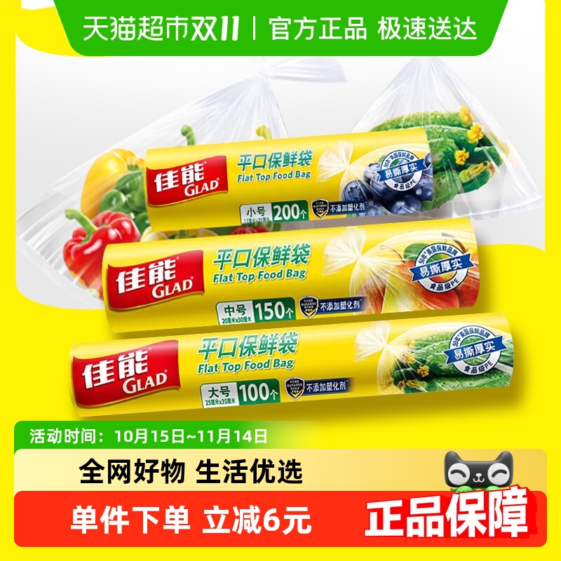 佳能glad背心保鲜袋家用食品级塑料袋加厚包装密封食品袋冰箱