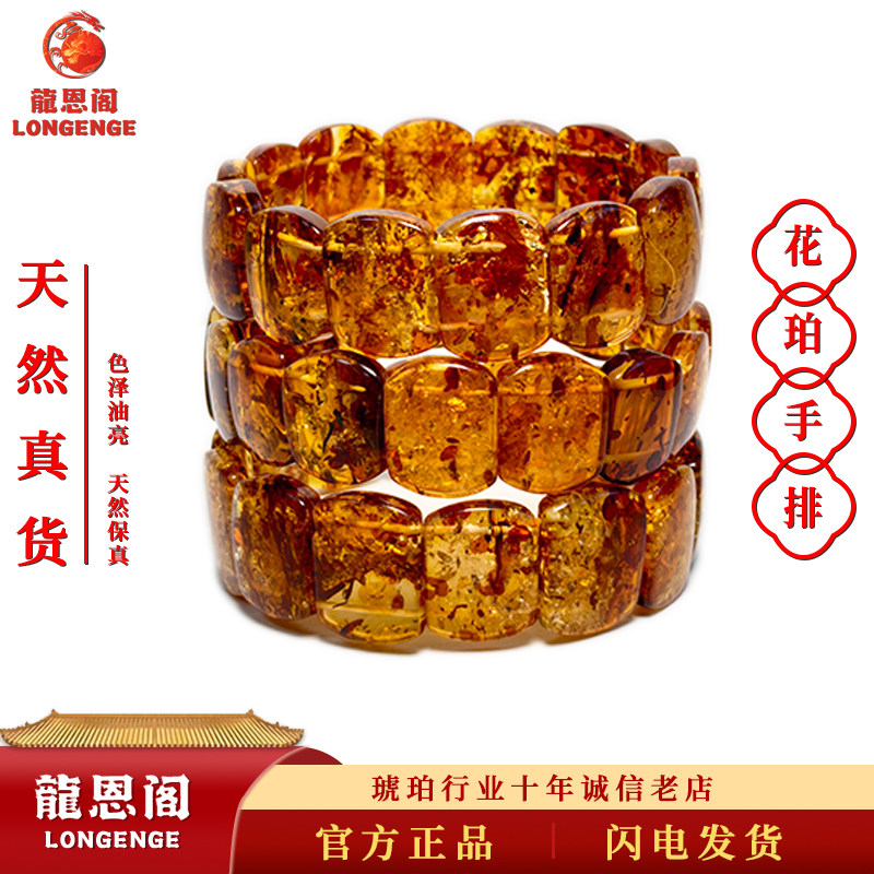 天然真货花珀手排爆花波罗的海新中式手串原石直切民族风首饰热卖