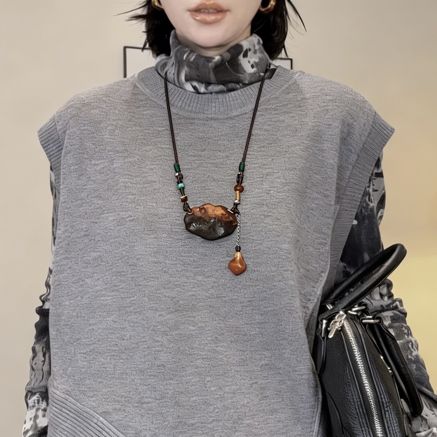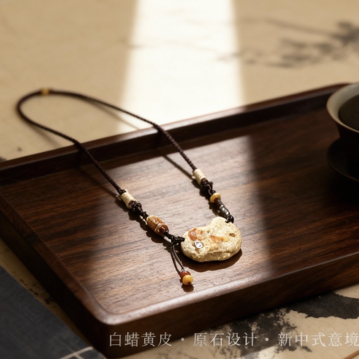 二姐家定制珠宝波罗的海琥珀蜜蜡原皮原石藏式民族风简约皮绳吊坠
