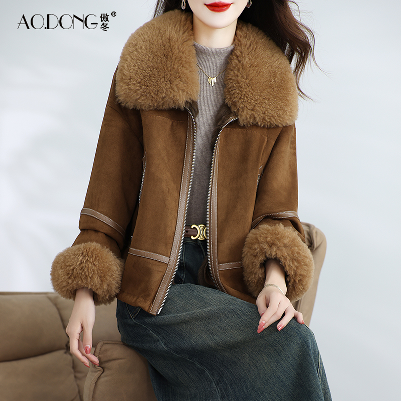 |温淑女神|2025冬新款羊剪绒大衣皮毛一体羊羔毛皮草外套女短款