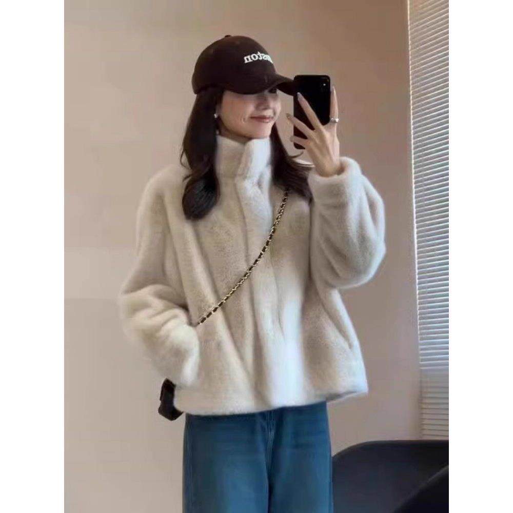 - 羊剪绒皮草外套女大码