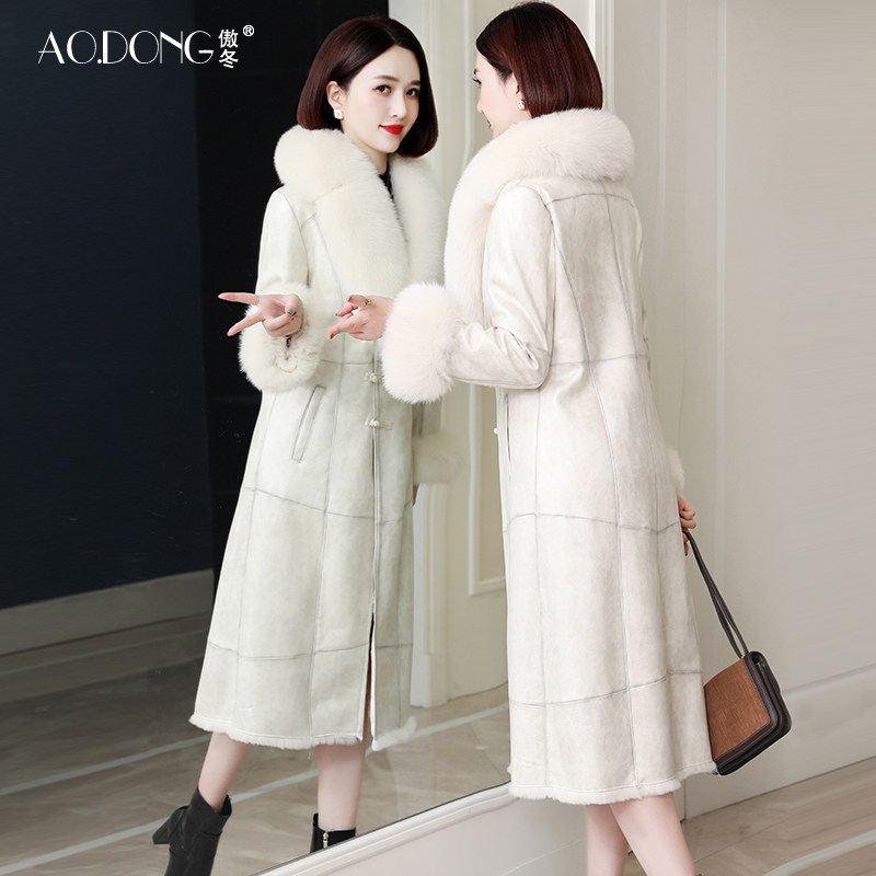 - 皮毛一体大衣女 中长款