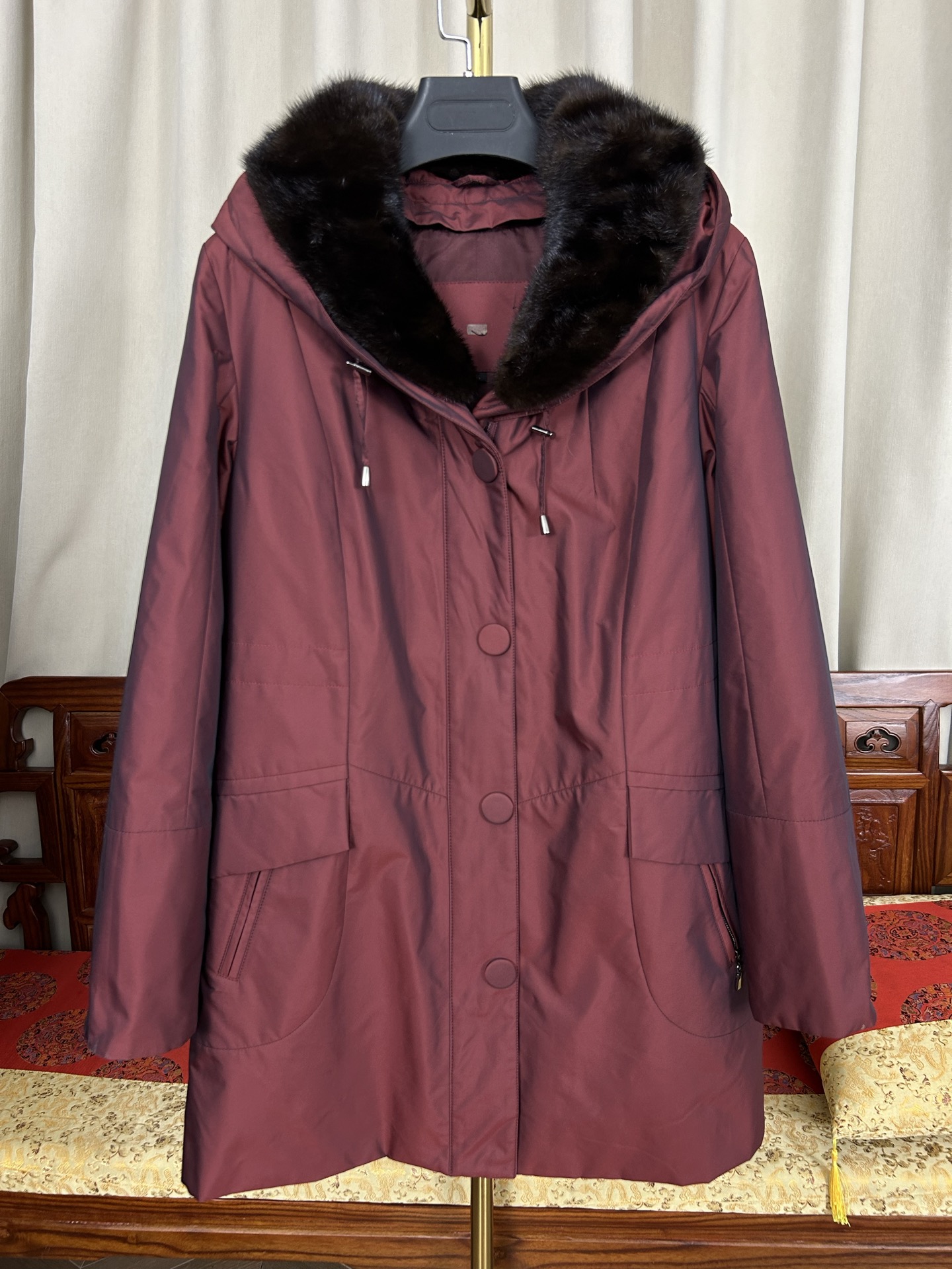 貉子毛领中长兔皮毛一体+鹅绒加厚侧插口袋抽绳皮草外套女525长96