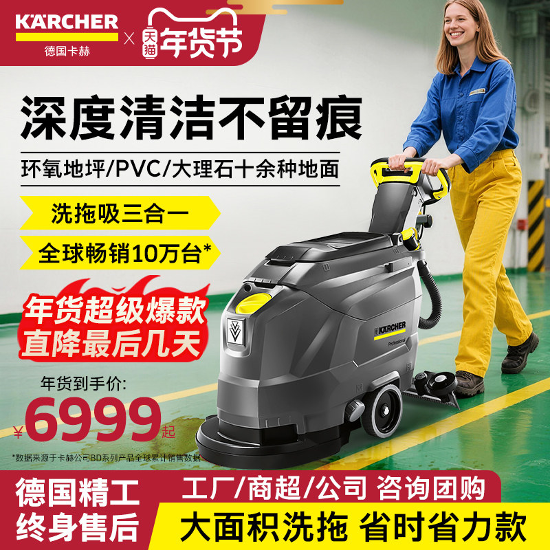 德国卡赫工业洗地机商用车间酒店超市手推式小型无线拖地一体BD35
