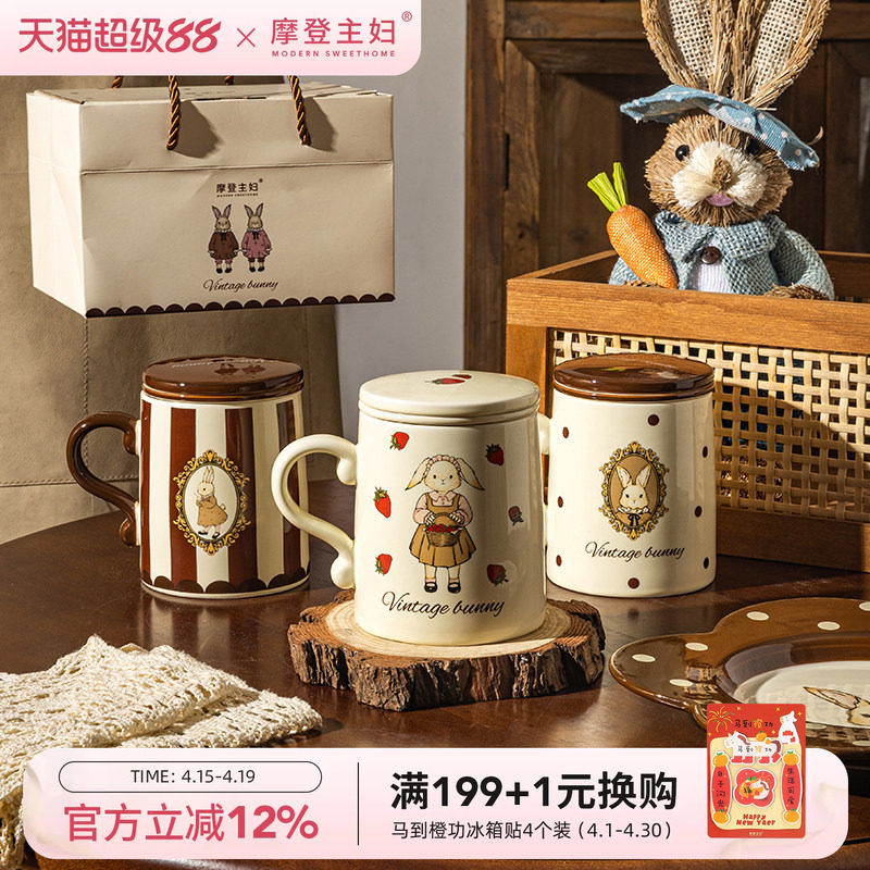 摩登主妇赫拉兔泡茶杯茶水分离陶瓷马克杯带盖办公室水杯子咖啡杯