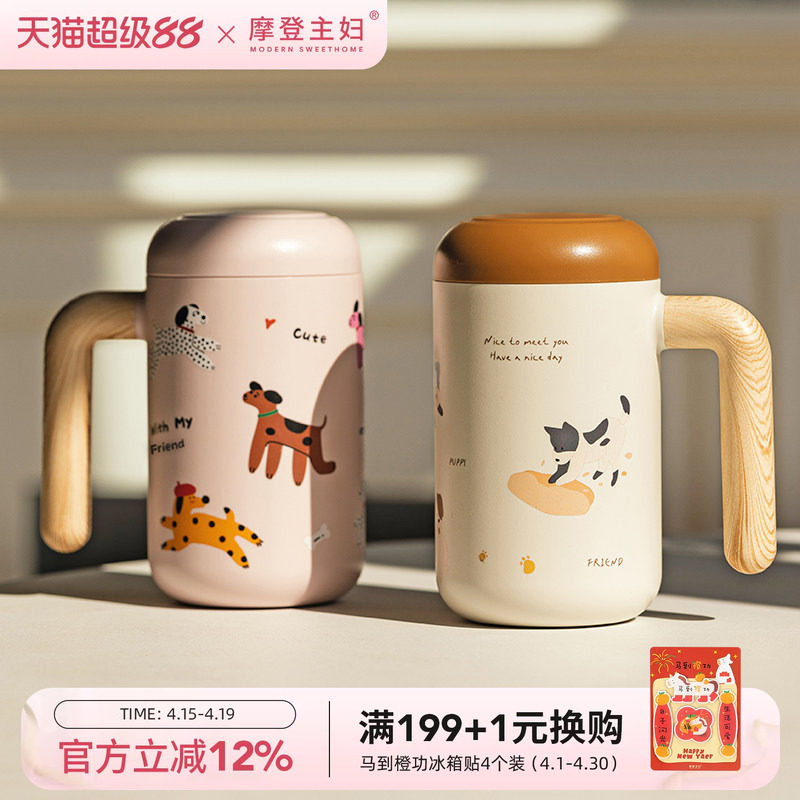 摩登主妇陶瓷内胆保温杯带手柄办公室水杯女泡茶水分离杯子马克杯