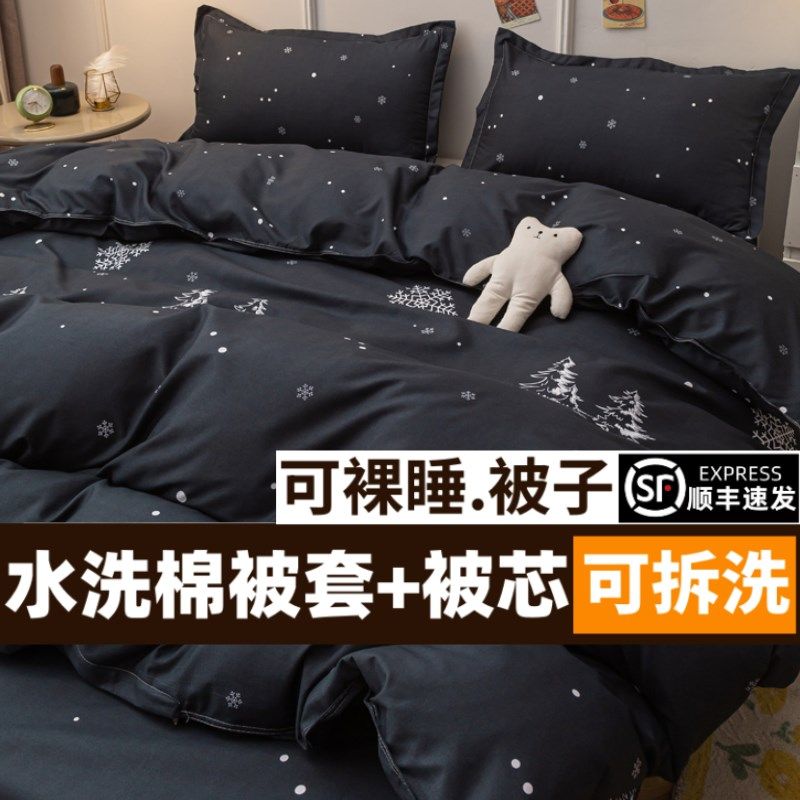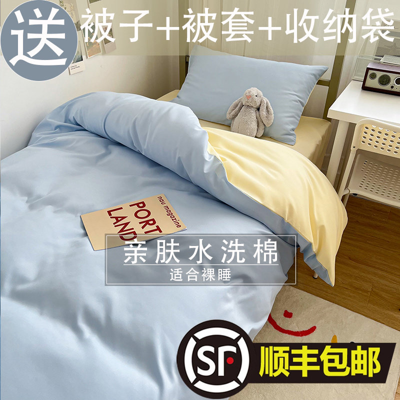 水洗棉被子被套全套两件套单人学生宿舍被芯被罩一整套可拆洗纯棉