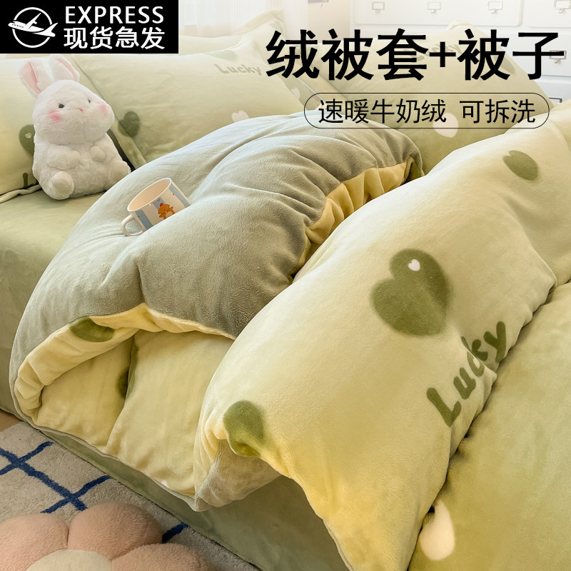牛奶绒被子被套一整套可拆洗冬被双人10斤加厚被芯珊瑚绒学生棉被