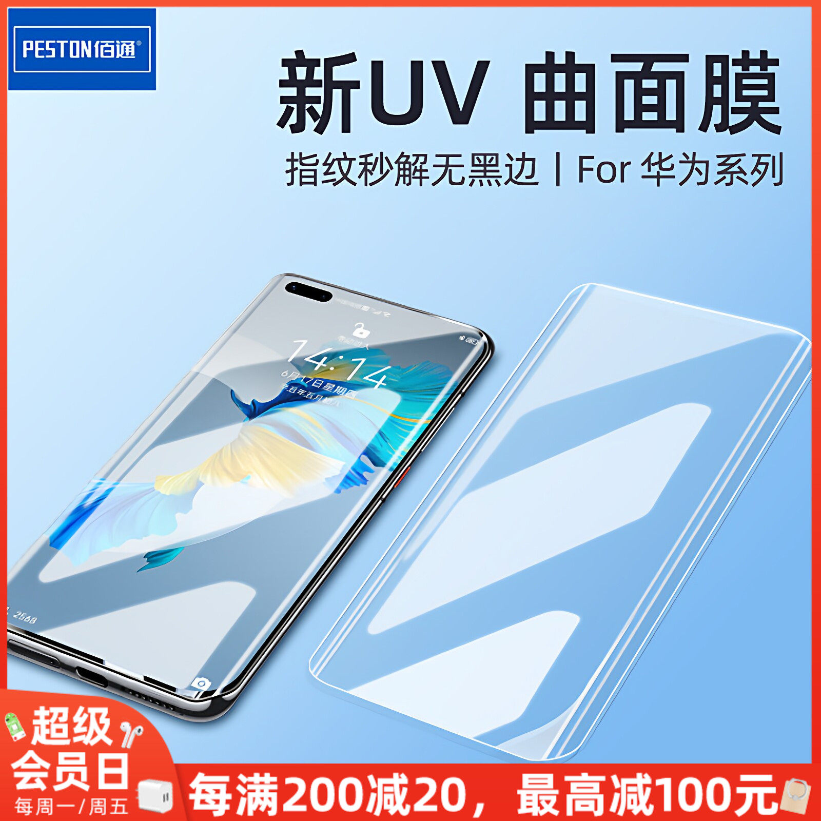 佰通适用于华为nova7/8/9/10Pro荣耀Magic4/80SE/100Pro手机Mate40/50/60曲面UV钢化P30/40/50防摔屏幕保护膜