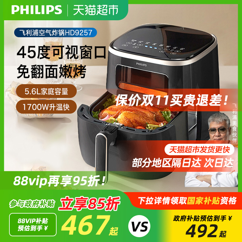 政府补贴飞利浦可视空气炸锅烹饪HD9257多功能智能家用电炸锅烤箱