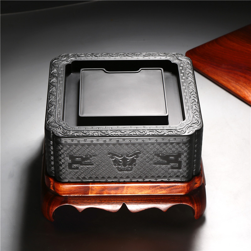 赋比兴 国家非遗 镶嵌螺钿火锅砚台 大号带盖火锅砚台不干墨 精品歙砚台 天然原石高档书法文房四宝笔墨纸砚