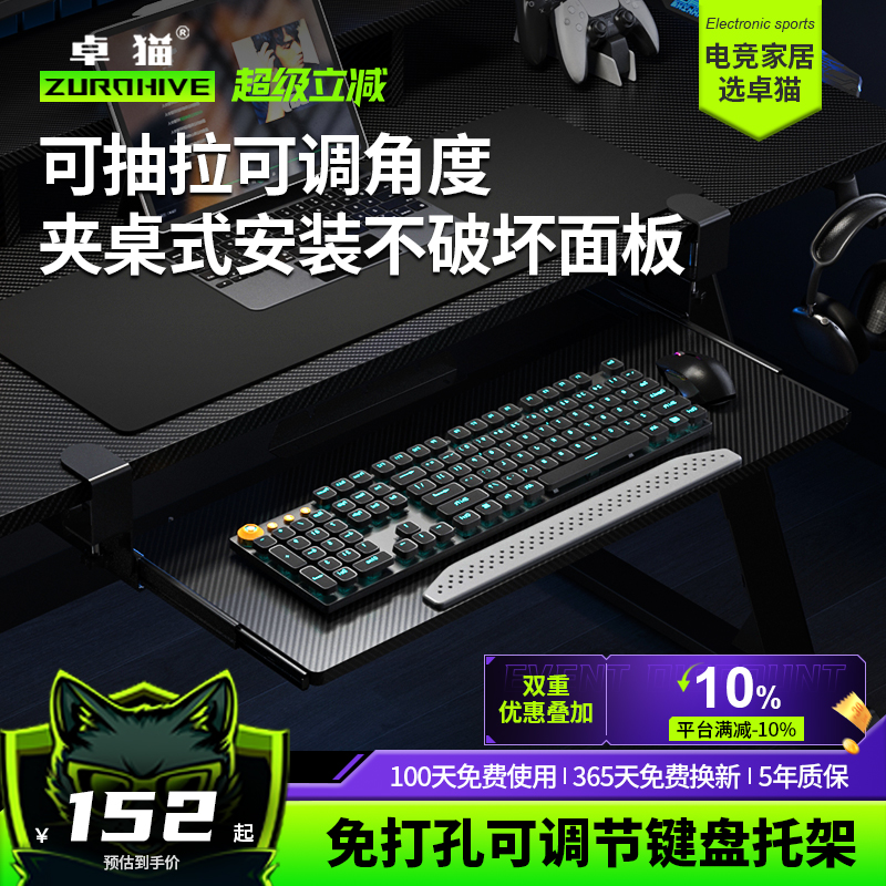 台式电脑键盘托架免打孔桌下抽屉收纳鼠标键盘桌面延长支架可伸缩