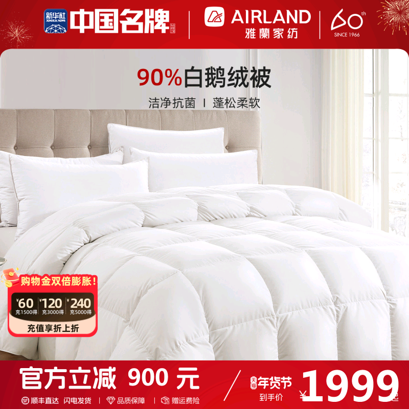 雅兰家纺90白鹅绒羽绒被芯冬天被子单双人抗菌加厚保暖冬被新品