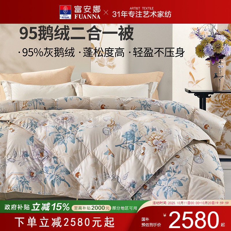 富安娜家纺鹅绒被95白鹅绒子母被二合一被芯春秋单人双人羽绒被芯