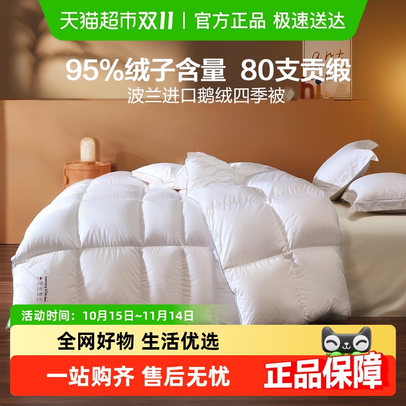 罗莱家纺羽绒被芯波兰进口95白鹅绒双人床鹅绒被子蓬松保暖冬被