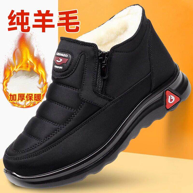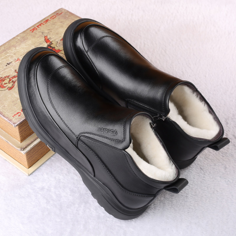 羊毛棉鞋真皮男鞋冬季加绒保暖皮鞋加厚防滑软底休闲高帮中老年鞋