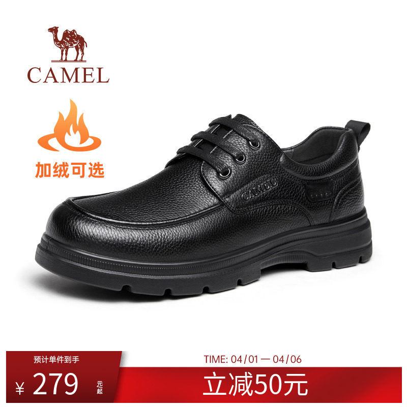 骆驼2024冬季软底舒适真皮爸爸中年休闲商务软底舒适皮鞋加绒男