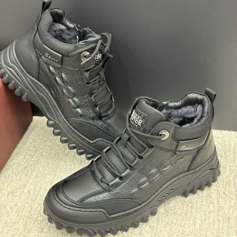 冬季男士运动鞋高帮休闲中年爸爸鞋防滑男鞋皮面大码保暖加绒棉鞋