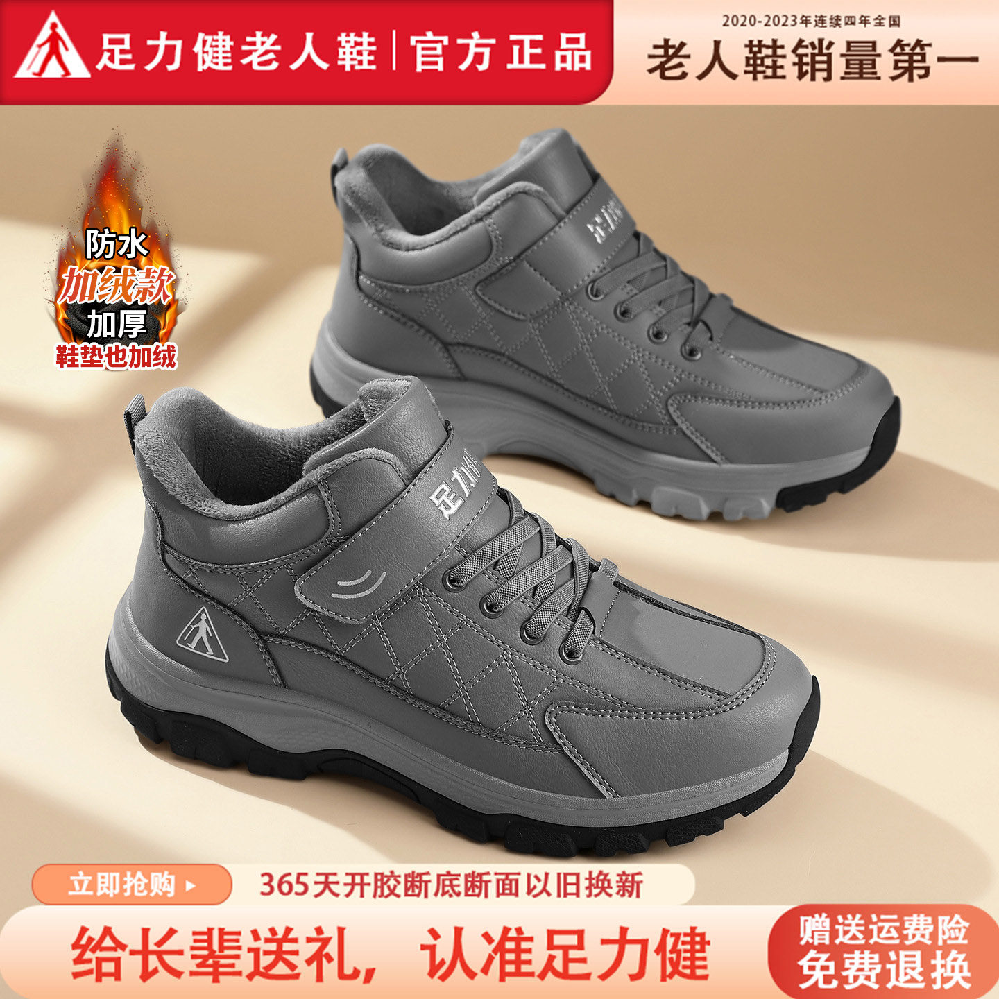 足力健老人鞋官方旗舰店正品男鞋冬季加绒棉鞋防滑中年舒适爸爸鞋