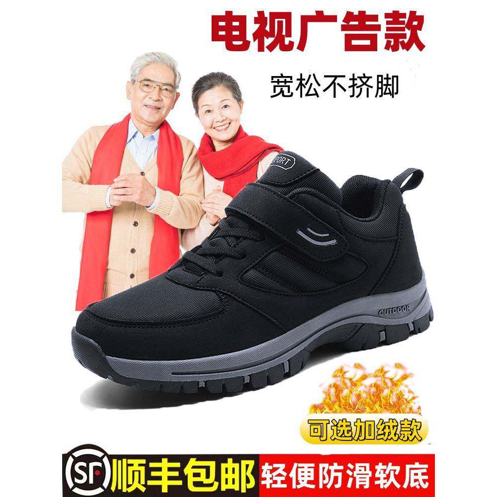 香港运动鞋冬季新款正品男士健步男鞋加绒保暖防滑软底中老年棉鞋
