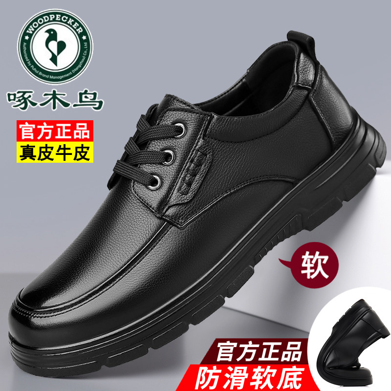 蜻蜓牌冬季新款防滑皮鞋男商务正装男鞋真皮中老年爸爸百搭休闲鞋