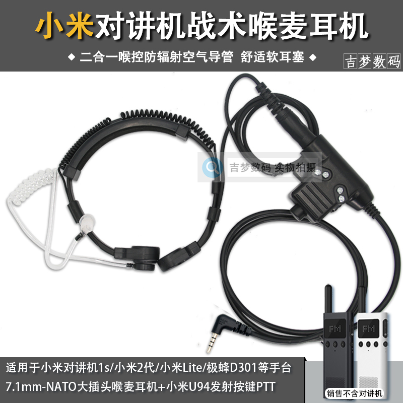 战术喉麦空气导管耳机适用小米对讲机Lite/1S/2代米家手台喉控